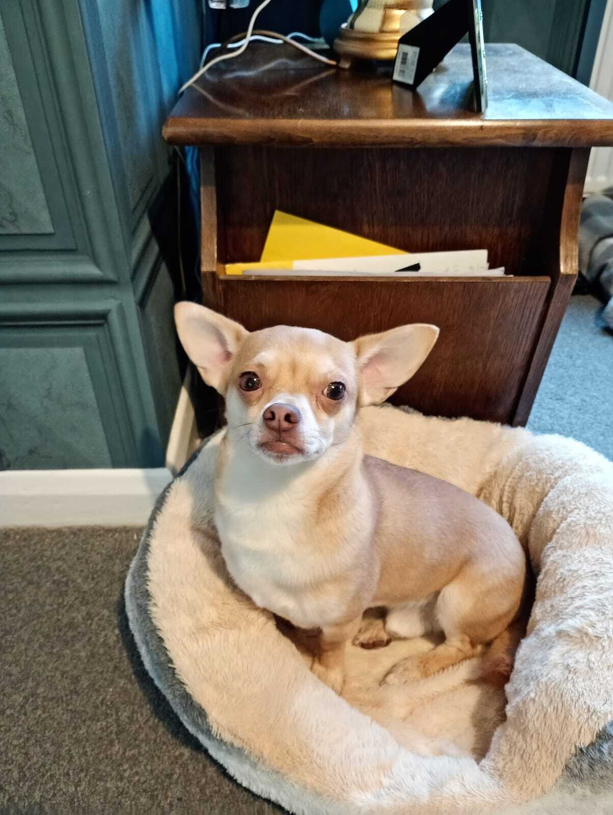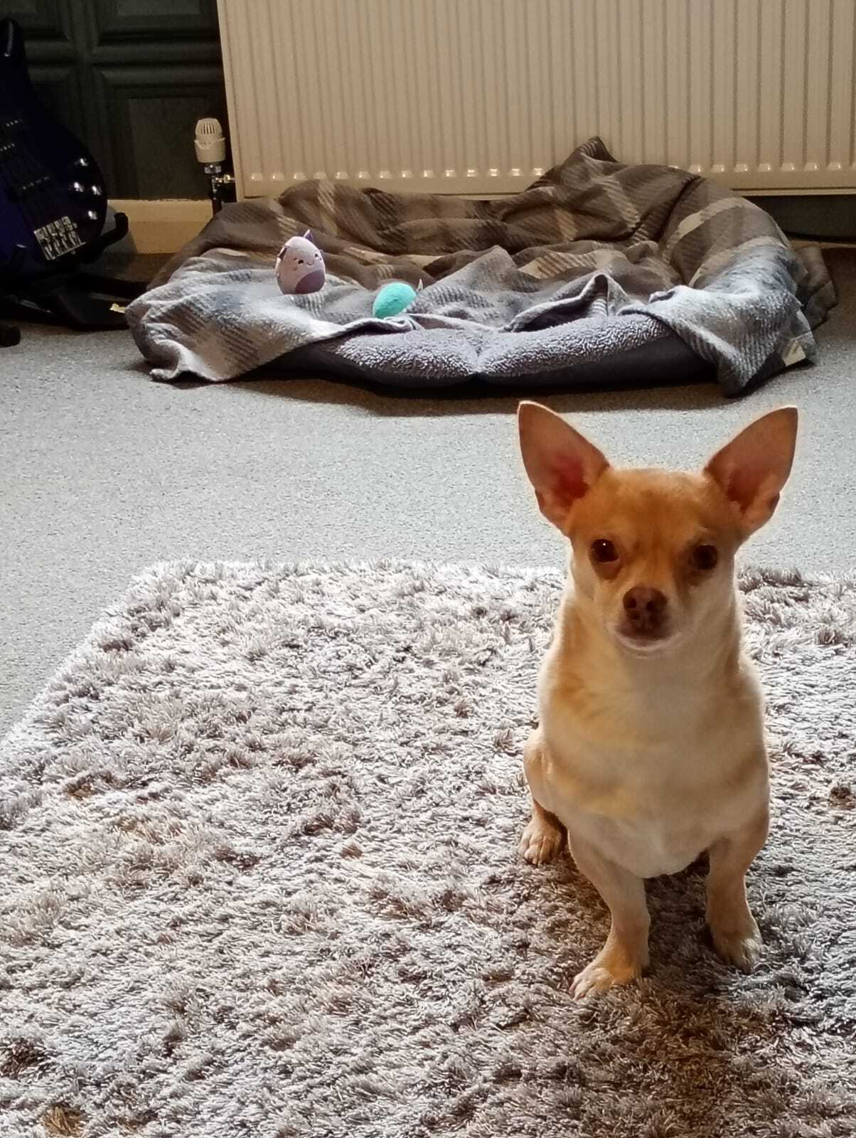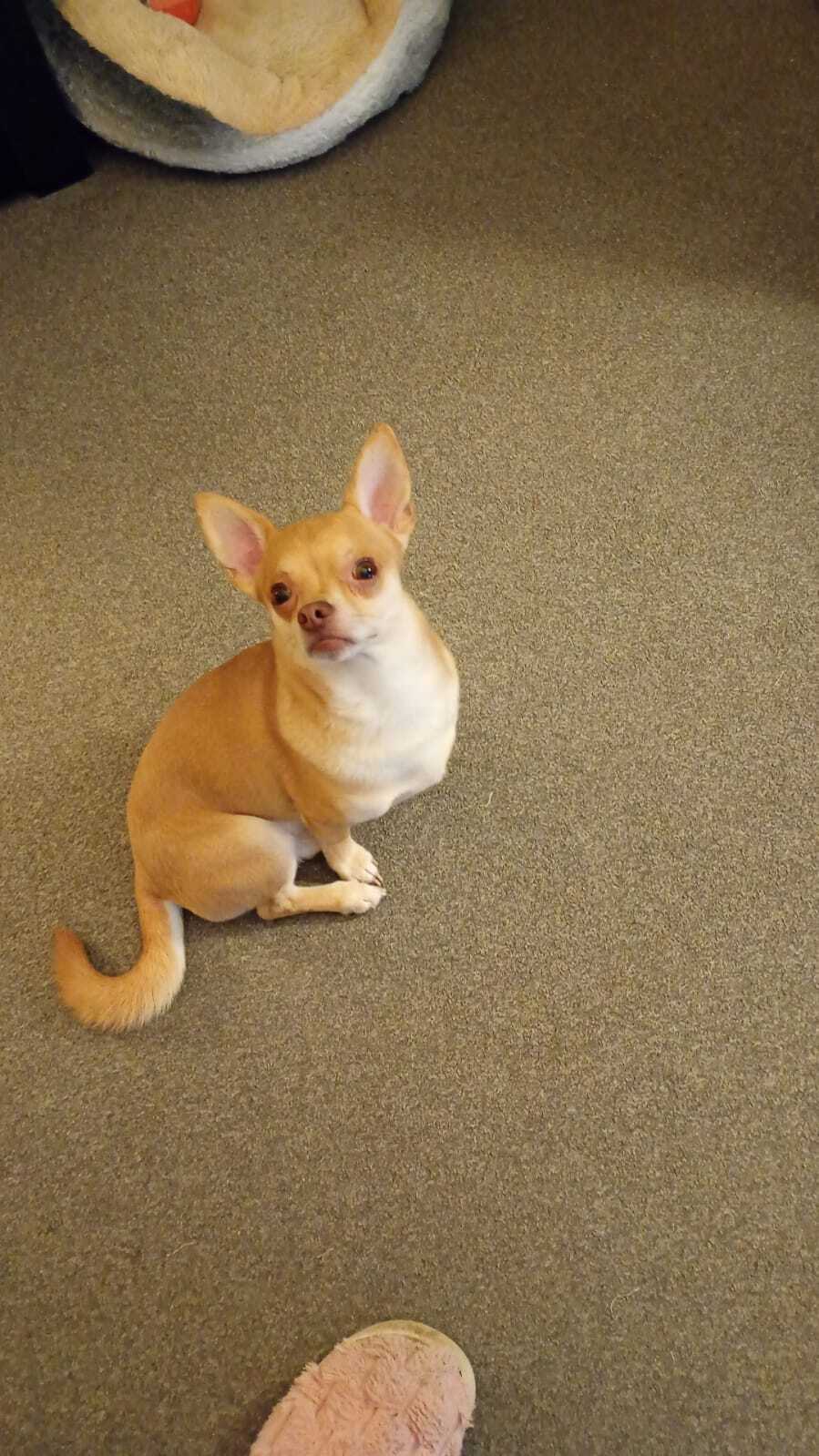I’m a smooth-haired Chihuahua, not one of the teeny-tiny ones. I’ve got a bit more leg, a lot of personality, and I’m two years old, so just a baby really. I’m a happy, playful boy with a zest for life and special love for my person.