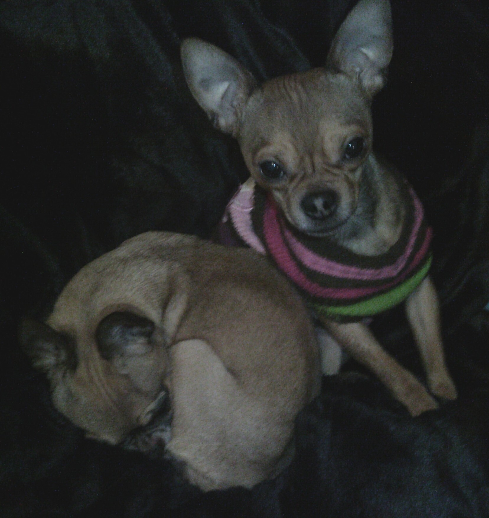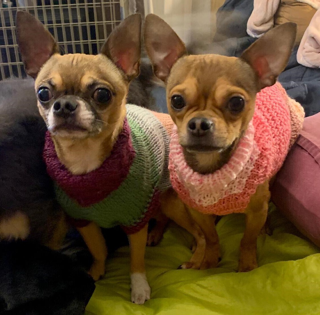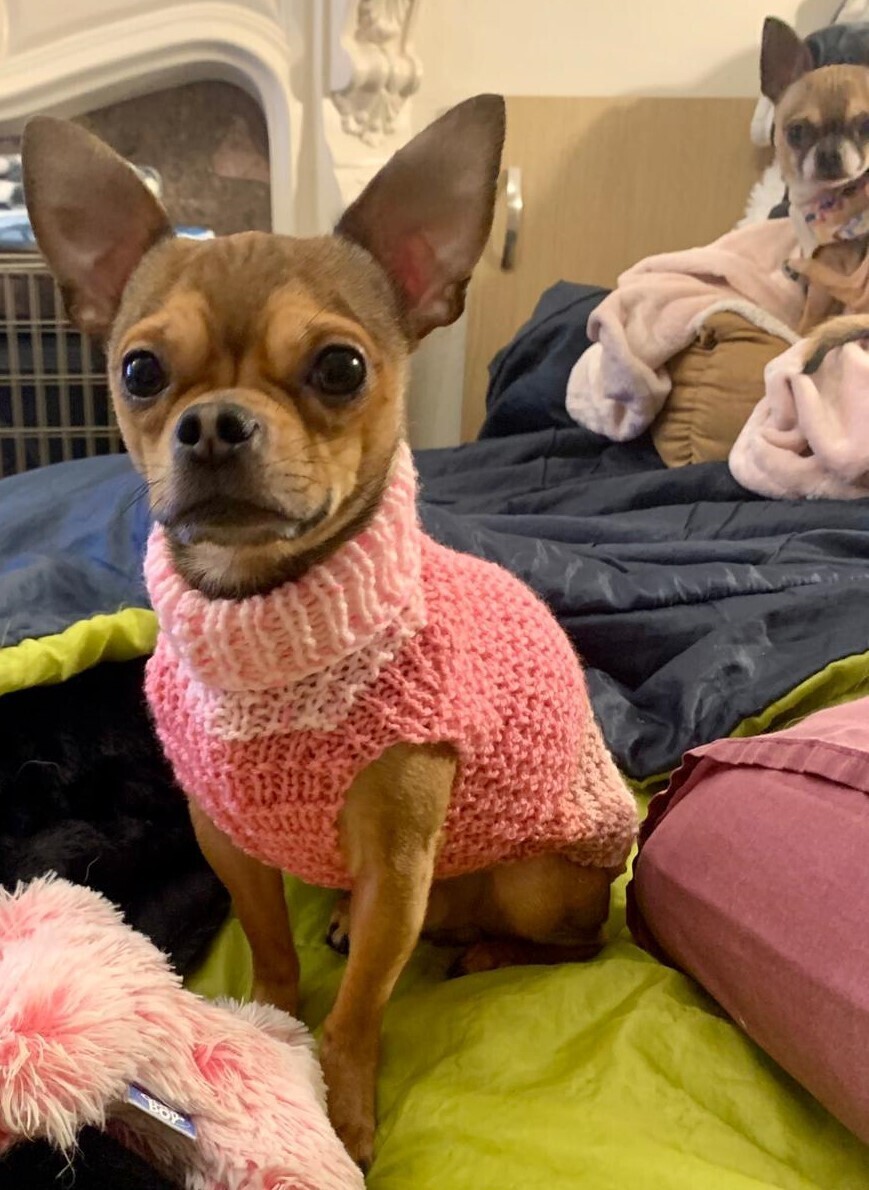 We haven’t been cat tested and would be best suited to a home without cats. We also need an adult only home with no busy social scene. We can feel overwhelmed by too much noise or activity, so adopters should be calm, experienced with small dogs and able to move at our pace.