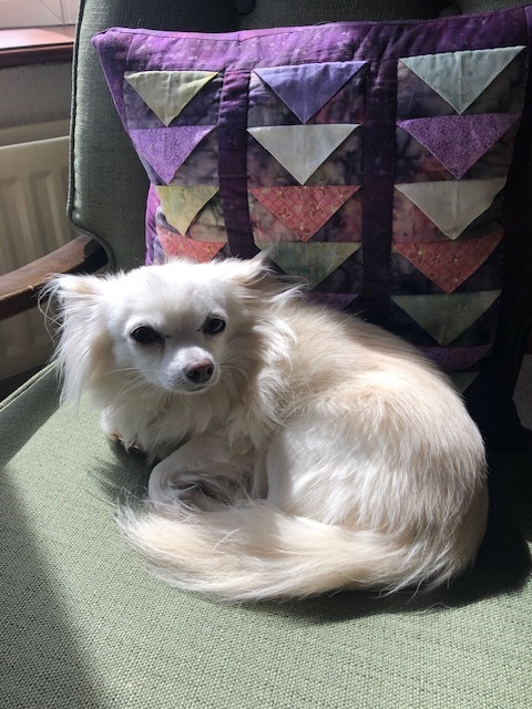 “I was broken-hearted from losing my Lottie, and Casper was sad too. He’s very different to Lottie the diva, but I can’t believe how lucky I am to have found him. He hardly ever barks. He’s fun and loves cuddles. If I’ve been out, he comes running and wants to be picked up.”