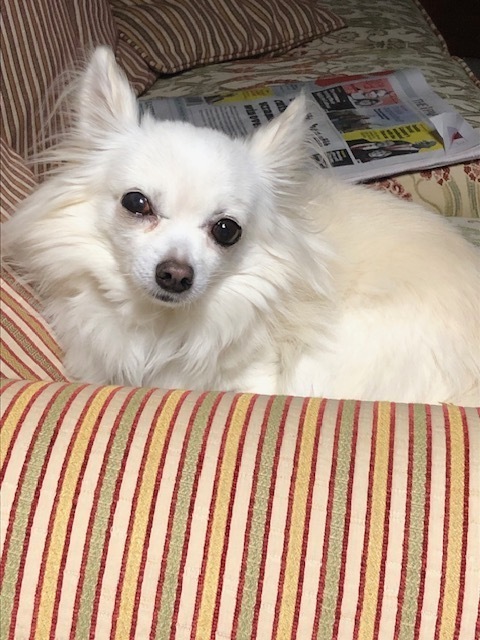Chris says, “He’s such a loving dog who just wants to snuggle up with people. He is good with children. My granddaughters, who are 11 and 9 years old, are excited to meet him. Everybody loves him. He lets people stroke him, and if he really likes you, he puts his little paws on you. He has such lovely, calm eyes.”